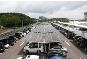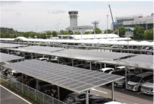 The system, a 2.6 MW carport-type PV facility, which is one of the largest power generation capacities at any airport in Japan, is located in the parking lots of the airport, and is expected to generate 2,700 MWh of electricity annually. The generated power is supplied to the Hiroshima Airport terminal building, reducing the airport’s CO2 emissions by 1,450 tons/year, which equates to a 19% reduction in emissions. The generated power can also be used to enhance the airport’s resilience by supplying power to the passenger terminal during disasters and providing external power through independent outlets in case of a power outage.