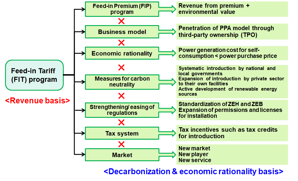 It is no exaggeration to say that only the FIT program has been the driving force of expansion of PV dissemination up till today, but on and after April 2022 when the Renewable Energy Promotion Act will be enforced, a new driving force which is not based on power sales profit will be required.