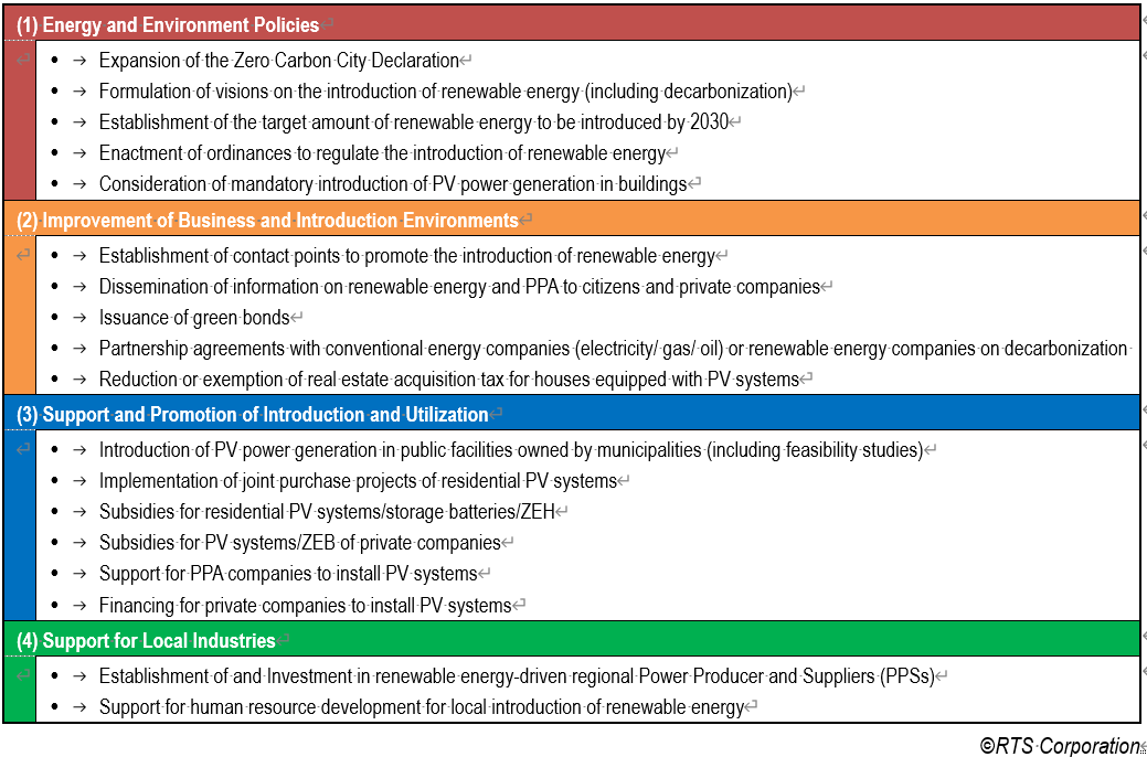 Table 1 Latest activities by local governments over renewable energy, mainly PV