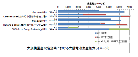 各社の事業概要、沿革、M&A、上場取引所、資本金・売上高、資本系列、対日・対外関係、出荷量、生産量、生産能力(2016年末)、生産拡張計画、生産拠点、生産品目、技術開発、主要調達先・取引先、設置計画・事例、所在地・連絡先等