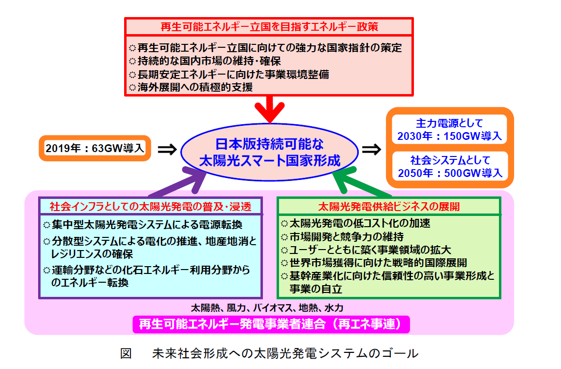 弊社は、2018年に日本の電力供給力と再エネ電力の需要を分析し、日本の太陽光発電システム累積導入量を2030年までに150GWに高めることが可能であることを示す「PV150 構想」を発表しました。次いで、2019年にはPV150実現に向けた具体的取り組み案として「PV150 行動計画」を発表しました。