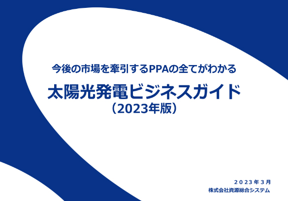 株式会社資源総合システムは、2022年3月29日(水)に、今後の市場を牽引するPPAの全てがわかる「太陽光発電ビジネスガイド(2023年版)」を発行いたしました。「太陽光発電ビジネスガイド」は、市場環境とその変化を的確に捉えてテーマを決め、太陽光発電ビジネスに関わるすべてのみなさまにガイドブックとしてご活用いただけるよう、弊社が2017年から発行しているレポートです。