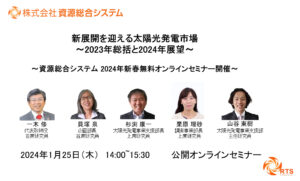 2024年1月25日(木)に「新展開を迎える太陽光発電市場~2023年総括と2024年展望~」と題した公開セミナーを開催いたします。