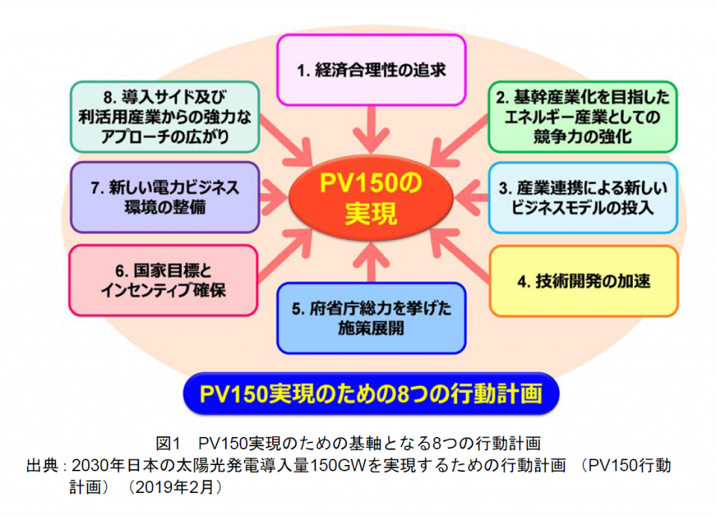 弊社は2018年2月に2030年の新たな導入目標として150GWの導入(PV150)を提言したが、その続編としてPV150の実現に向けた行動計画(PV150行動計画)を提言したい。PV150を現実的な目標として掲げ「主力電源としての責任を担う太陽光発電」に挑戦すべき時であると考えるが、同時に、FIT制度開始以来の太陽光発電の急増によって顕在化した問題の解決を始めとし、制度、産業構造、産業競争力、技術開発、電力利用、社会環境等、多角的に取り組むべき課題が多く存在する。
